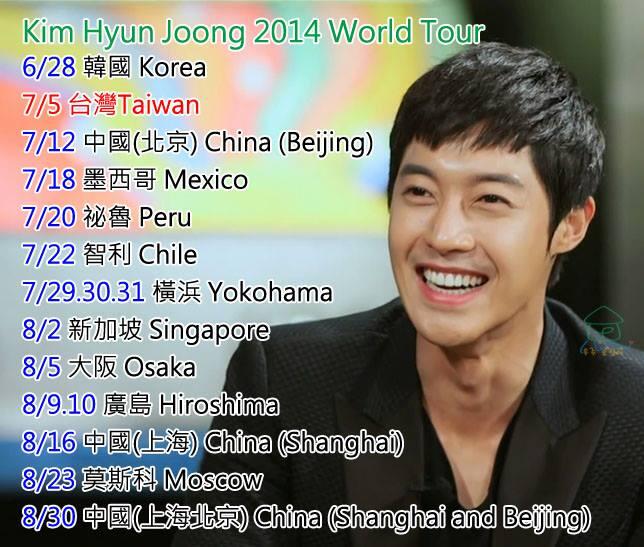 Kim Hyun Joong 2014 World Tour schedule.